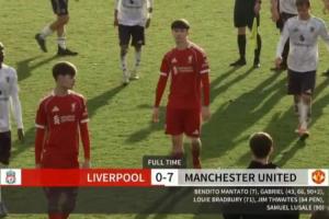 體育資訊11月29日訊 在剛剛結(jié)束的一場(chǎng)英超U18聯(lián)賽中,曼聯(lián)U18以7-0大勝利物浦U18。