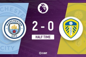 半場結(jié)束,曼城暫2-0利茲聯(lián)。