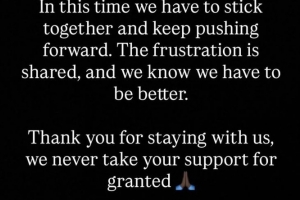 中場帕佩·薩爾在賽后通過社媒發(fā)文向球迷們致歉:“在這段時期,我們必須團結一致,繼續(xù)前進。我們同樣感到沮喪,并且深知我們必須做得更好。”