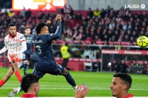 體育資訊12月1日訊 西甲第14輪皇馬客戰(zhàn)赫羅納第45分鐘,奧納西中路無人盯防,跟進兜射破門。