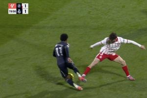 這次判罰存在雙重爭議:首先犯規(guī)地點恰在禁區(qū)線上,若判罰犯規(guī)本應(yīng)是皇馬的點球。此外上半場皇馬還有一粒進(jìn)球因姆巴佩射門前明顯手球而被判無效。