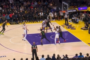 GIF-費爾斯在罰球線耍小動作 八村塁回頭怒推