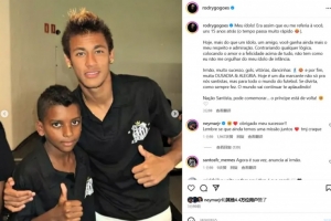 體育資訊1月31日訊 內(nèi)馬爾自宣回歸桑托斯,羅德里戈曬出了15年前在內(nèi)馬爾在桑托斯的合照,向內(nèi)馬爾送上了祝福。