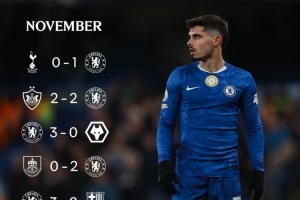 切爾西在11月參加6場(chǎng)比賽,戰(zhàn)績4勝2平保持不敗,切爾西官方社媒曬出戰(zhàn)績海報(bào),配文:“11月不敗。”