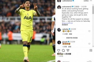 羅梅羅社媒曬出比賽照片,配文:“一切都關(guān)乎努力拼搏、不斷進(jìn)步、勇往直前。尤其在當(dāng)下,當(dāng)事態(tài)不如意時,我們更要團結(jié)一心??”
