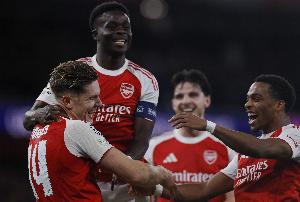 阿森納首發(fā)陣容:拉亞、本-懷特、廷伯、因卡皮耶、卡拉菲奧里、蘇維門(mén)迪、賴(lài)斯、厄德高、薩卡、埃澤、梅里諾。