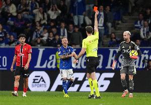 體育資訊12月06日訊 今天凌晨結束的西甲第15輪,皇家奧維耶多主場0-0戰(zhàn)平馬洛卡,比賽最后時刻40歲老將卡索拉因鏟球動作過大吃到紅牌。