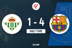 體育資訊12月7日訊 北京時(shí)間1:30,西甲第15輪皇家貝蒂斯vs巴塞羅那,比賽在塞維利亞奧林匹克體育場打響!上半場,安東尼破門幫助貝蒂斯取得領(lǐng)先,但隨后費(fèi)蘭·托雷斯2分鐘2球?qū)⒈确址闯∨宓吕镏グ偷录傧乱怀?;費(fèi)蘭遠(yuǎn)射破門完成帽子戲法!半場結(jié)束,巴薩暫時(shí)4-1領(lǐng)先貝蒂斯。