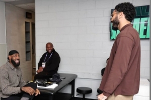 本場(chǎng)比賽,詹姆斯和塔圖姆都因傷沒(méi)有出戰(zhàn),不過(guò)他們進(jìn)行了一場(chǎng)會(huì)面。