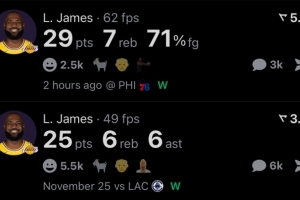 此役湖人球星詹姆斯全場(chǎng)比賽出戰(zhàn)34分鐘,17投12中,三分球6中4,2罰1中得到賽季新高29分7板6助。