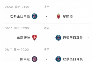 巴黎2月份將3次對(duì)陣布雷斯特,分別是2月2日0點(diǎn)法甲客戰(zhàn)布雷斯特,2月12日4點(diǎn)歐冠淘汰賽附加賽首回合客戰(zhàn)布雷斯特,2月19日4點(diǎn)次回合主場(chǎng)對(duì)陣布雷斯特。