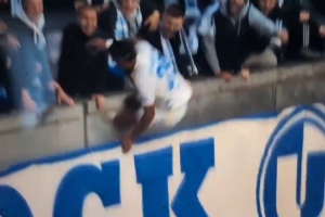 在馬格德堡客場2-0擊敗柏林赫塔的比賽中,這位法國進攻球員在傷停補時進球后轉向客隊看臺慶祝,跳過看臺前的欄桿,卻出乎自己意料地掉進了一個2.7米深的溝里。