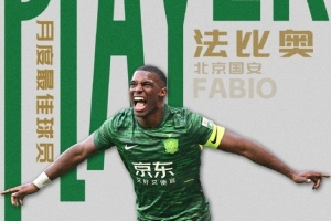 體育資訊12月8日訊 2場比賽攻入6球的國安外援法比奧,當選為中超11月最佳球員。