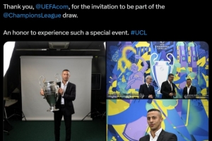 體育資訊1月31日訊 蒂亞戈作為抽簽嘉賓出席了本賽季歐冠淘汰賽附加賽抽簽。
