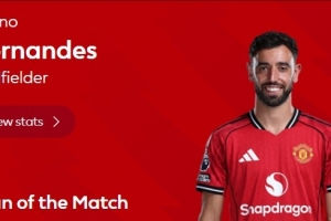 體育資訊12月9日訊 英超官方宣布,B費(fèi)當(dāng)選曼聯(lián)4-1狼隊(duì)的球迷票選最佳球員。