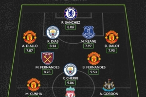 體育資訊12月9日訊 英超第15輪戰(zhàn)罷,whoscored評(píng)選出本輪最佳陣容,?;倏恕?kù)尼亞領(lǐng)銜鋒線、謝爾基、B費(fèi)坐鎮(zhèn)中場(chǎng)。