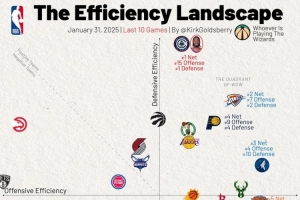 橫軸代表進(jìn)攻效率、縱軸代表防守效率