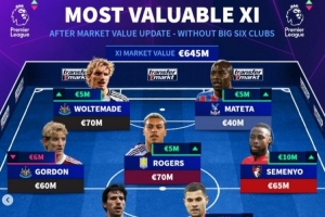 前鋒:安東尼·戈登(紐卡,6000萬歐)、沃爾特馬德(紐卡,7000萬歐)、馬特塔(水晶宮,4000萬歐)、塞梅尼奧(伯恩茅斯,6500萬歐)