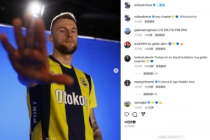 什克里尼亞爾通過社媒曬出自己身穿費內巴切球衣的定妝照,并配文:“新的篇章@費內巴切”
