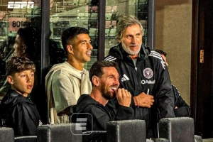 梅西組織的青少年錦標(biāo)賽“梅西杯”在邁阿密開幕,梅西與蘇亞雷斯來到現(xiàn)場,觀看巴薩對陣河床的青訓(xùn)梯隊(duì)比賽。