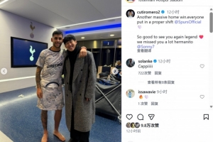孫興慜重回?zé)岽讨鲌?chǎng),現(xiàn)任球隊(duì)隊(duì)長(zhǎng)羅梅羅也在社媒曬出與孫興慜的合照,配文寫道:“又拿下一場(chǎng)關(guān)鍵的主場(chǎng)勝利,每個(gè)人都做出了自己的貢獻(xiàn)。很高興與球隊(duì)傳奇重逢,我們太想念你了兄弟!”