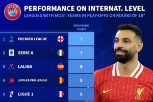 體育資訊2月1日訊 本賽季歐戰(zhàn)小組賽已經(jīng)完賽,《轉(zhuǎn)會市場》也統(tǒng)計了各大聯(lián)賽在歐戰(zhàn)淘汰賽階段的席位: