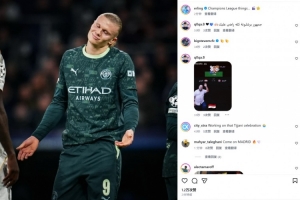 本場比賽哈蘭德點(diǎn)射破門,賽后他也在個(gè)人社媒曬出微笑攤手照片,配文寫道:“關(guān)于歐冠的事情????”