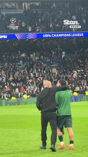 體育資訊12月11日訊 歐冠第6輪曼城客場(chǎng)2-1逆轉(zhuǎn)擊敗皇馬,賽后瓜迪奧拉被拍到與弟子謝爾基親切交流。