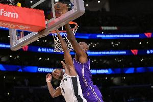 湖人防守頻頻犯規(guī)送馬刺上罰球線,不犯規(guī)這個(gè)后場(chǎng)防守真沒(méi)法玩,尤其在防突破上極度吃力。福克斯、卡斯?fàn)?、哈珀、凱爾登、瓦塞爾五個(gè)人的持球沖擊力打穿了湖人防線,強(qiáng)點(diǎn)突刺結(jié)合弱側(cè)三分雨,馬刺不到三節(jié)就建立起20分以上領(lǐng)先優(yōu)勢(shì)。