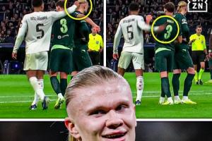 DAZN曬出圖,在哈蘭德罰點(diǎn)前,貝林想碰下哈蘭德頭發(fā),不過被魯本·迪亞斯阻擋,之后貝林還回頭看了一眼。有球迷也曬出了這一瞬間的視頻。