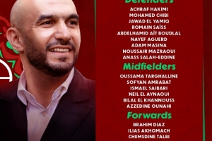 體育資訊12月11日訊 非洲杯即將來臨,奪冠熱門摩洛哥公布了參賽大名單,阿什拉夫、布拉希米·迪亞斯、馬茲拉維領銜,布努、阿姆拉巴特入選。