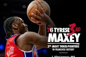 據(jù)統(tǒng)計(jì),馬克西76人生涯三分命中數(shù)已經(jīng)達(dá)到664記,超越科沃爾(661)排名隊(duì)史第三,僅次于艾弗森和考文頓。