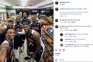 其中一張照片是美國隊巨星在一家超市里的合照、另一張是霍華德與奧拉朱旺、尤因、大衛(wèi)·羅賓遜在香港的合照?;羧A德配文:“傳奇再現(xiàn),經(jīng)典瞬間!”