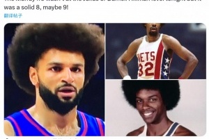 前掘金主帥喬治-卡爾對(duì)此點(diǎn)評(píng)道:“穆雷的爆炸頭沒(méi)有J博士或達(dá)內(nèi)爾-希爾曼的帥,今天這個(gè)我打8分、9分也行。”