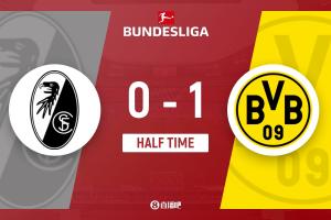 第31分鐘,多特前場任意球開到禁區(qū),混戰(zhàn)中本塞拜尼搶射破門!多特蒙德1-0弗賴堡↓