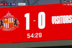 可以看到在桑德蘭1-0領(lǐng)先紐卡的比分牌上,既沒有后者的隊(duì)名也沒有隊(duì)徽,僅僅以客隊(duì)來標(biāo)注。