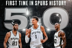 很難想象,在馬刺輝煌的球隊歷史上,竟從未有過5連勝開局,而那個夜晚,年僅21歲的文班亞馬,用27分、18個籃板、6次助攻和5次封蓋的華麗數(shù)據(jù),率隊107-101力克熱火,將戰(zhàn)績改寫為5勝0負,就此書寫新的歷史。