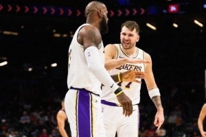 賽后,湖人發(fā)布贏球海報(bào),東契奇和詹姆斯登上封面。