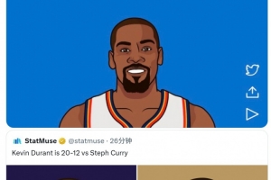 至此,杜蘭特生涯和庫里交手戰(zhàn)績來到了20勝12負(fù)。