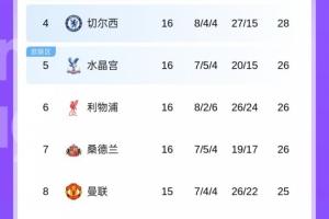 英超15輪過后,曼聯(lián)7勝4平4負(fù)積25分排在第8位。本場如果能贏球,曼聯(lián)將升至英超第5。