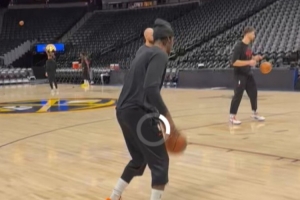 上午10:30,火箭將客場(chǎng)挑戰(zhàn)掘金。伊森(腹斜?。┍涣袨槌鰬?zhàn)成疑的狀態(tài)。