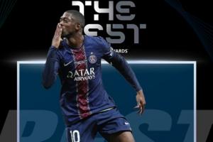 體育資訊12月17日訊 2025年FIFA年度最佳頒獎典禮正在進行,巴黎圣日耳曼前鋒登貝萊當(dāng)選2025年度FIFA最佳球員!