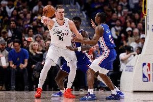 約基奇本場(chǎng)16中11,三分3中2,罰球5中4,得到28分9籃板13助攻2搶斷。比賽最后2分鐘,他個(gè)人連得11分外加1助攻,率領(lǐng)掘金連得13分。