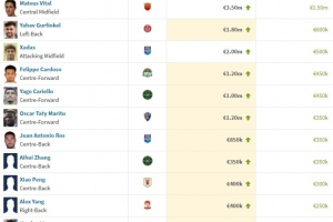 中超球員身價漲幅排名:維塔爾上漲150萬歐居首,古爾芬克爾第二