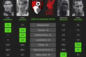 體育資訊2月1日訊 利物浦在本輪英超將對(duì)陣伯恩茅斯,后者在本賽季表現(xiàn)出色以40分位列第7,距離英超第3也僅有4分差距,后防線的表現(xiàn)可圈可點(diǎn)。whoscored也對(duì)比了兩隊(duì)的四位中衛(wèi)本賽季英超關(guān)鍵場(chǎng)均數(shù)據(jù):