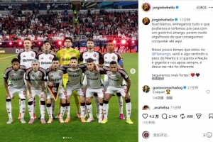 弗拉門(mén)戈中場(chǎng)若日尼奧社媒曬出首發(fā)球員的合照,配文:“我們奮力拼搏,傾盡全力,雖然帶著些許遺憾踏上歸途,但仍對(duì)迄今取得的成就感到無(wú)比自豪?!?/p>