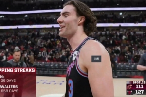 據(jù)統(tǒng)計(jì),這是公牛在658天以來首次贏騎士,他們上場贏騎士可以追溯到2024年2月29日。