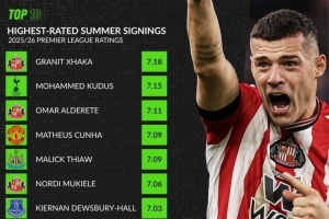 體育資訊12月18日訊 whoscored統(tǒng)計(jì)了本賽季英超新援的場均評分情況,桑德蘭隊(duì)長扎卡居首。