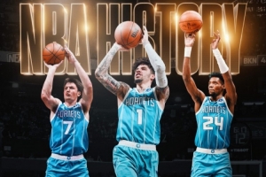 上半場黃蜂三分31中18,命中18記三分球追平了NBA歷史半場三分紀(jì)錄。