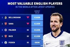 體育資訊12月19日訊 《轉(zhuǎn)會市場》今日更新了德甲球員身價,也列出了最新英格蘭球員身價榜。
